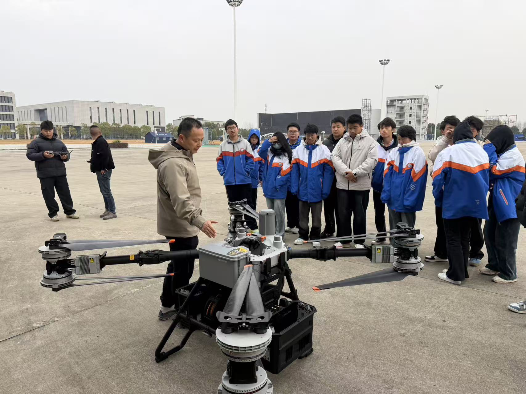 活動伊始,大疆行業(yè)應(yīng)用、北斗智航總經(jīng)理劉秀明代表公司歡迎該校師生,向大家詳細(xì)解讀了無人機(jī)從消費(fèi)級到行業(yè)級的發(fā)展譜系,清晰闡釋了兩類產(chǎn)品在功能設(shè)計(jì)、技術(shù)精度及應(yīng)用場景上的本質(zhì)差異與飛躍,讓同學(xué)們對無人機(jī)產(chǎn)品體系有了系統(tǒng)性、專業(yè)性有了深度認(rèn)知。